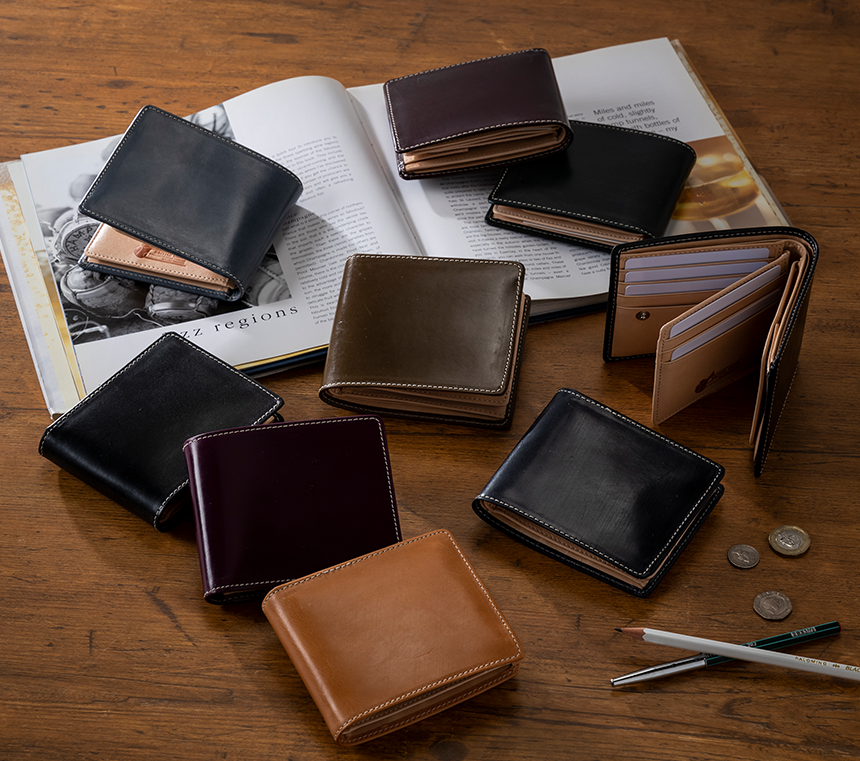 上質な英国製のブライドルレザーを使用した二つ折り財布は大きく見開いたボックス型のコインケース、大容量カード15枚収納と機能性も高く使いやすい逸品です。有名ブランドも使用している英国セドウィック社製のブライドルレザーは使い込むごとに味わい深い経年変化を楽しむことができます。馬具用に革を配給するイギリスの伝統的タナリーが、 丹念になめした最高級品質のブライドルレザーを使用した機能的二つ折り財布。