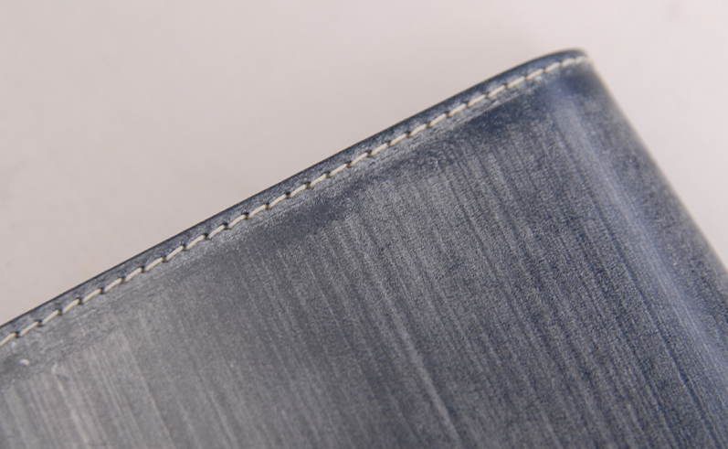 職人の手によってタナリー特製のオイルやワックスを染み込ませた革は、仕上がりの後、白く浮き上がるワックスに包まれた姿となります。ブルームと呼ばれる白い粉の下には、美しい光沢と艶を宿しており、年月を重ねるごとに艶やかさを増し、堅いだけではなく使うほどに馴染み、その変化を楽しむことができます。
